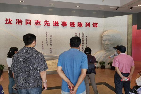 接着,大家来到沈浩同志先进事迹陈列馆。沈浩书记担任小岗村第一书记后,为小岗村改善基础设施、引进资源、规划发展道路,得到了村民的一致爱戴,曾被村民三次以按红手印的方式请求留在小岗村。他爱党敬业,无私奉献,最终因过度疲劳倒在了工作岗位上,但他为小岗村留下“乐于奉献,敢于担当”的精神财富一直延续至今。