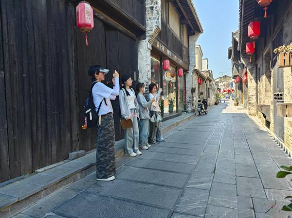 学生们迅速支起画板,以铅笔勾勒古桥的沧桑轮廓,用水彩晕染老街的晨雾炊烟,将漕运文化的厚重底蕴与非遗技艺的鲜活气息,悉数凝注于纸面。团队在柘皋镇的写生创作,为文化遗产的活化传播积累了丰富艺术素材。