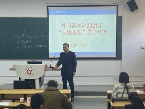 2021年11月10日下午2点,外国语学院在明德楼西二教室举办第二届课程思政教学比赛。经过前期教研室选拔推荐,共有8位教师进入学院比赛。比赛由院长柯应根、副院长余荣琦、教学督导及教研室主任担任评委,全体教师观摩比赛并参与打分。参赛选手的最终成绩由评委打分和全体观摩教师打分各占50%两项合成。