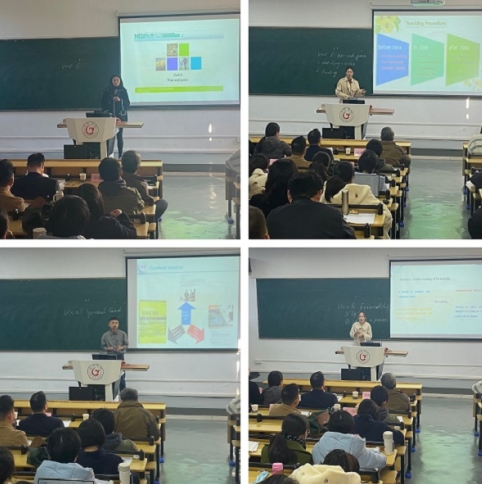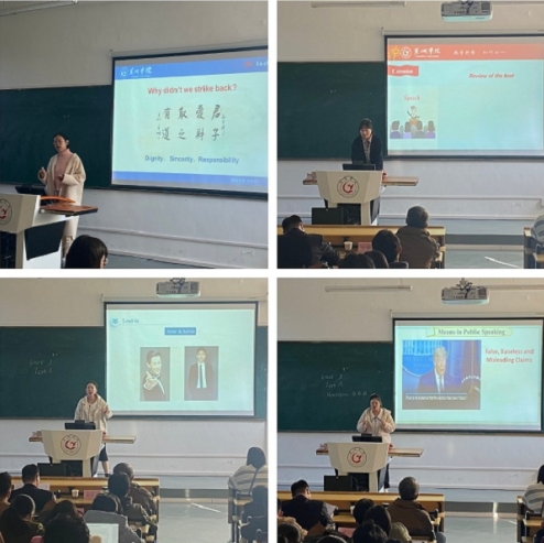 随后,汪袁园、周婧、赵雅芸、徐超和黄洁茹五位老师依次登台教学展示。汪袁园的“Become an Ethical Speaker”从演讲中的道德原则出发,告诫大家在演讲中需要实事求是、公正不阿,不能带有偏见和歧视。周婧的“War and Peace”不仅让大家了解到了战争的残酷,也表达了对革命先烈的崇高敬意,让人倍感和平与稳定来之不易,要加倍珍惜。 赵雅芸的“Spiritual Growth”教导学生要用乐观的心态对待逆境,勇敢的接受人生的挑战,在挑战中克服困难,逐步成长。徐超的“Price Negotiation”通过案例,分析了谈判人员在谈判过程中所需要的能力和技巧。黄洁茹的“Friendship Across Gender and Border”以友谊为主体,介绍了友谊的不同类型,解读了课文中的友谊之情,最后用俞伯牙和钟子期的友谊向同学展示了真正友谊的品质,真诚、善良、理解与尊重等。