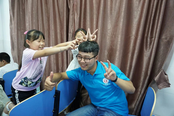 也是在那次的谢王小学爱心支教,高高大大的李旭带着孩子们玩得特别嗨,原本就有几分爱搞怪的他将自己搞怪的“特长”发挥得淋漓尽致,一个孩子突然嚷了一声“老师,你好像我妈妈!”童言无忌,童言最真,李旭“旭妈”的昵称也从校外传到校内了。